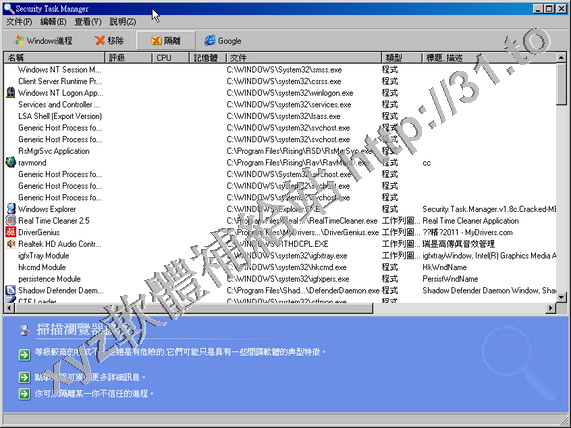 超級安全任務管理器,Security Task Manager和Windows 的標準任務管理器一樣用來顯