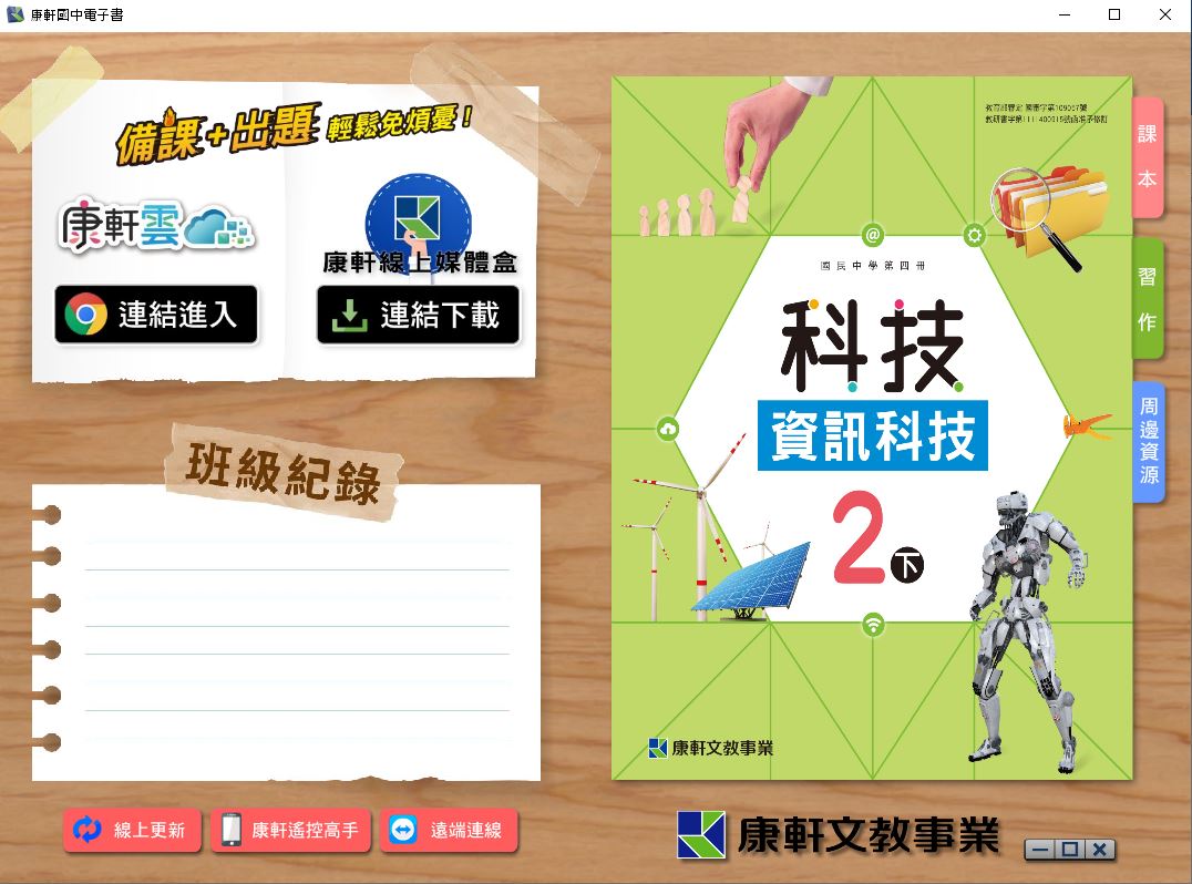 111學年下學期 國中 康軒版 資訊科技電子書 2年級(含課本、習作含解答、教學資源)教學光碟