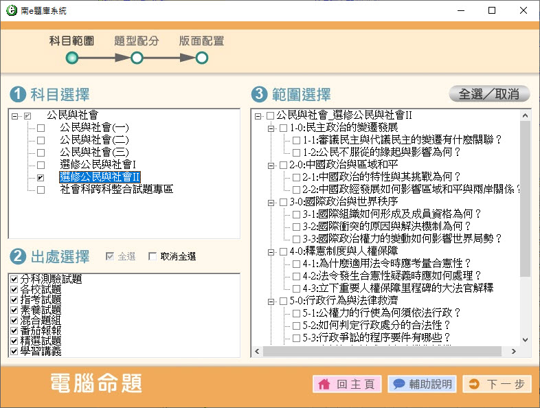 112學年上學期 高中命題光碟 南一版 公民與社會(一、二、三、選修I、選修II、跨科整合試題)(108課綱) 題庫光碟