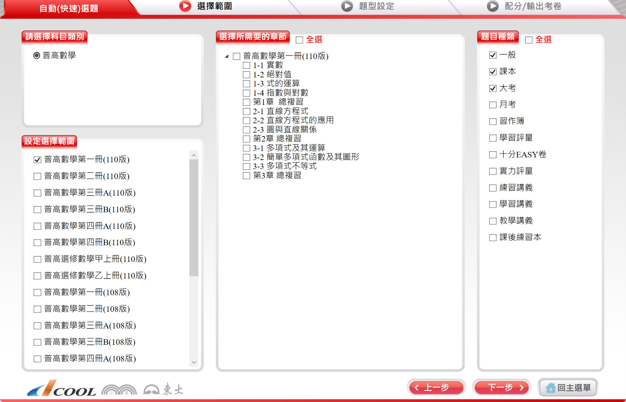112學年上學期 高中命題光碟 三民版 數學科(一、二、三A、三B、四A、四B、選修甲上、選修甲下、選修乙上、選修乙下)(108課綱)題庫光碟