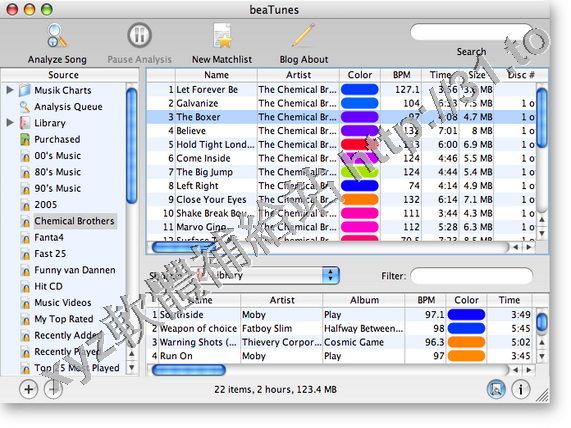 元件。該軟體可以分析 BPM(每分鐘的節拍),歌曲開頭和結尾靜音以及彩色(根據音頻光譜)