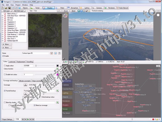 Terragen2功能與功能強大的多的角位移功能先進的混合動力micropolygon渲染。