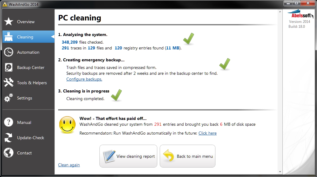 Abelssoft WashAndGo 2014 v18.1 英文正式版(垃圾文件清理軟體)