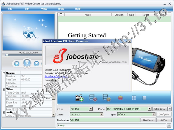 • Joboshare PSP Video Converter v2.9.2.0405 英文正式版(音視頻轉換軟體)
